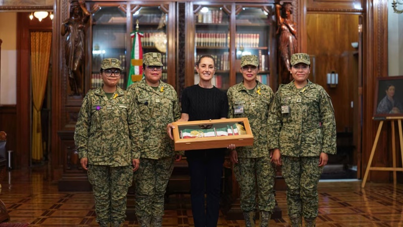 A unas horas de dar su primer Grito de Independencia como presidenta de México, Claudia Sheinbaum Pardo recibió la banda presidencial que portará durante la ceremonia del 215 aniversario del inicio de la lucha independentista en Palacio Nacional. La prenda, confeccionada por mujeres militares de la Secretaría de la Defensa Nacional (Sedena), simboliza no solo la continuidad del protocolo histórico, sino también la visibilidad y el protagonismo de las mujeres en los actos cívicos del país, en el marco del 2025: Año de la Mujer Indígena.