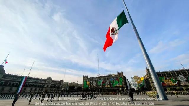 La presidenta de México, Claudia Sheinbaum Pardo, encabezó este 19 de septiembre de 2025 la solemne ceremonia de izamiento de la bandera nacional a media asta en el Zócalo capitalino, en memoria de las víctimas de los sismos ocurridos en 1985 y 2017, tragedias que marcaron profundamente la historia de la Ciudad de México.