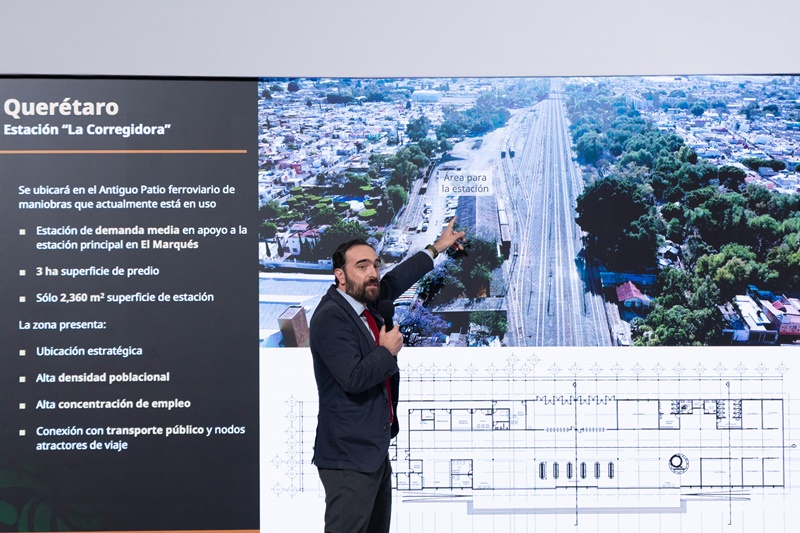 Sobre la estación La Corregidora, en Querétaro, precisó que estará ubicada en un predio ferroviario existente.