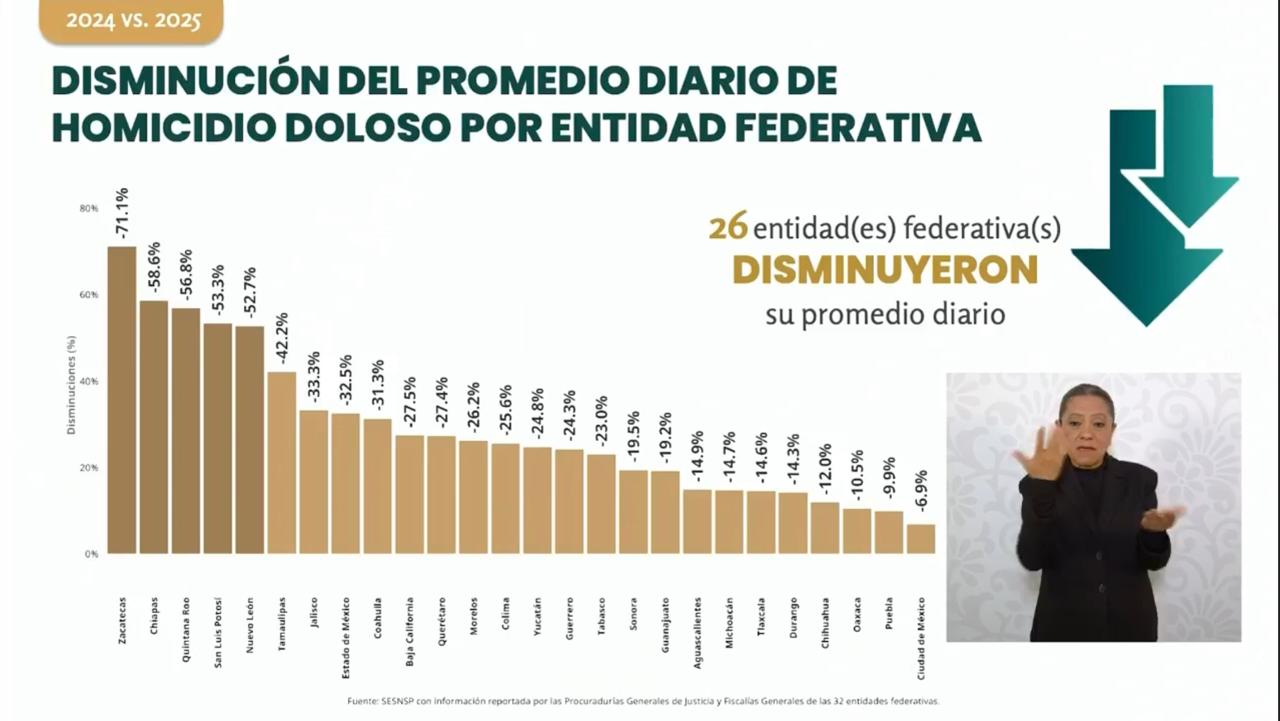 De acuerdo con el comparativo oficial del SESNSP, Zacatecas encabeza el listado de 26 entidades federativas que lograron disminuir su promedio diario de homicidios dolosos en ese periodo, un resultado que marca un punto de inflexión para un estado que, en años anteriores, enfrentó importantes retos en materia de seguridad. Esta reducción sostenida refleja, según las autoridades, la efectividad de la estrategia implementada y el fortalecimiento de la coordinación entre los distintos niveles de gobierno.