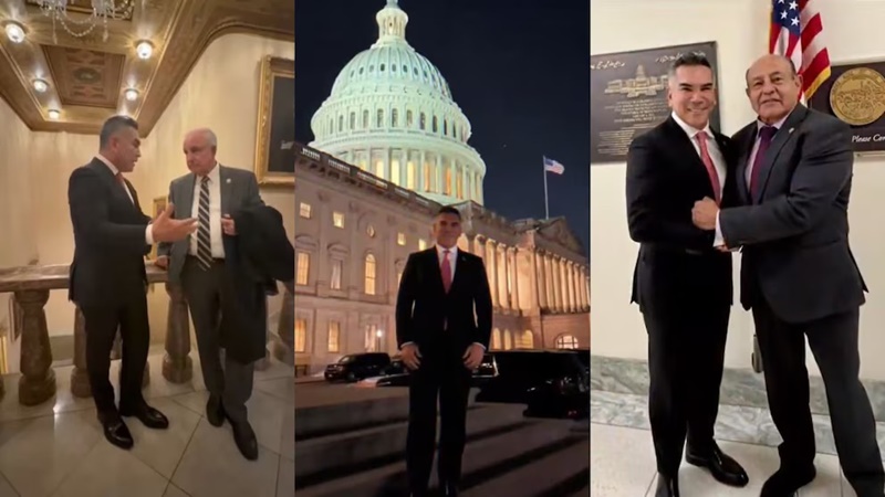 Durante su gira sostuvo encuentros con María Elvira Salazar, presidenta del Subcomité del Hemisferio Occidental en la Cámara de Representantes; Carlos A. Gimenez, Zach Nunn y Lou Correa. Según el propio dirigente, dialogaron sobre seguridad hemisférica, combate al narcotráfico y el papel estratégico del T-MEC como motor de competitividad regional.