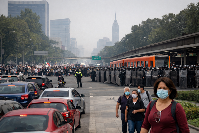 El transporte público —especialmente el Metro— sigue funcionando, pero con alta demanda de usuarios y posibles tiempos de espera mayores en estaciones con mayor afluencia. Esto se siente especialmente en líneas y estaciones cercanas a zonas donde se concentran las marchas.